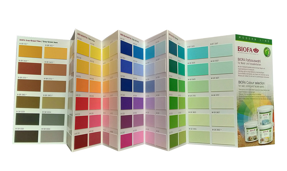Farbauswahl aus dem BIOFA MURIC-Farbtonfächer für PRIMASOL Wandfarben